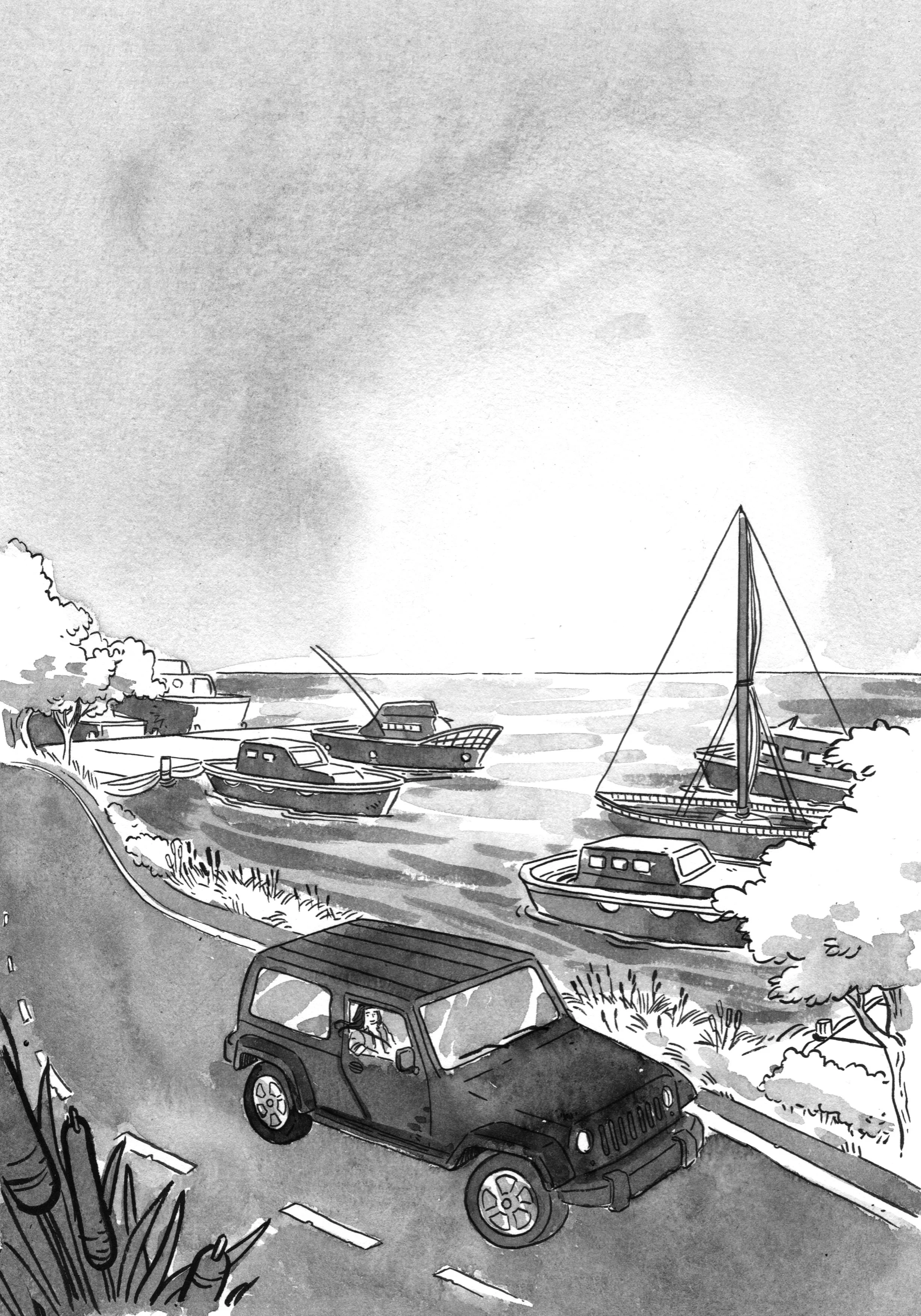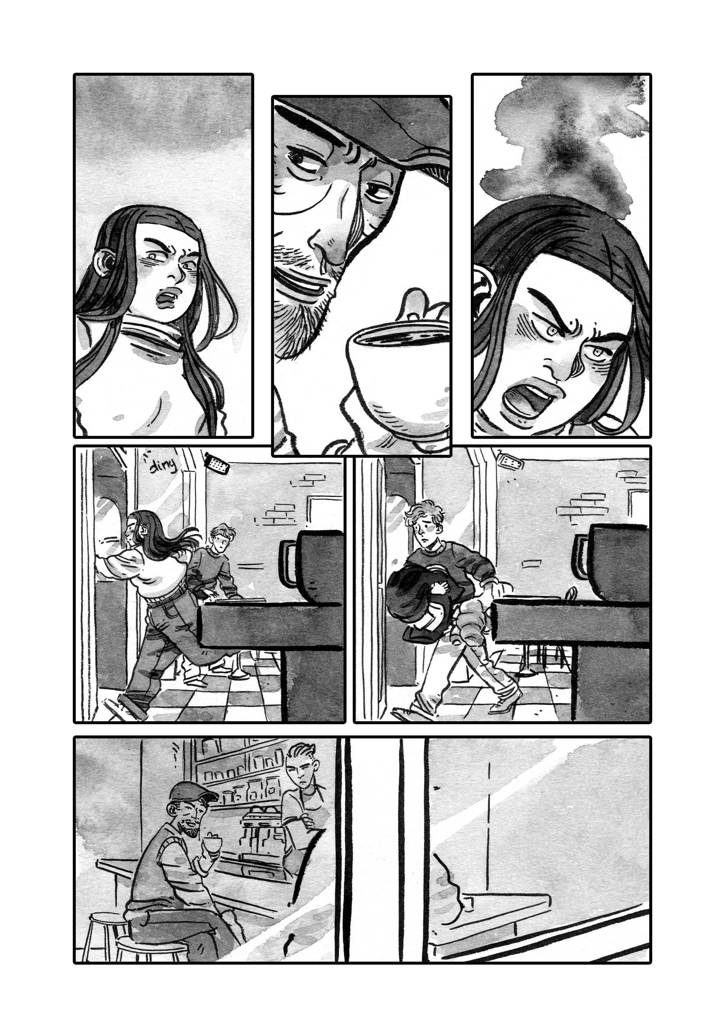 Pencils and inks on roughly-cut 9X14 Strathmore.