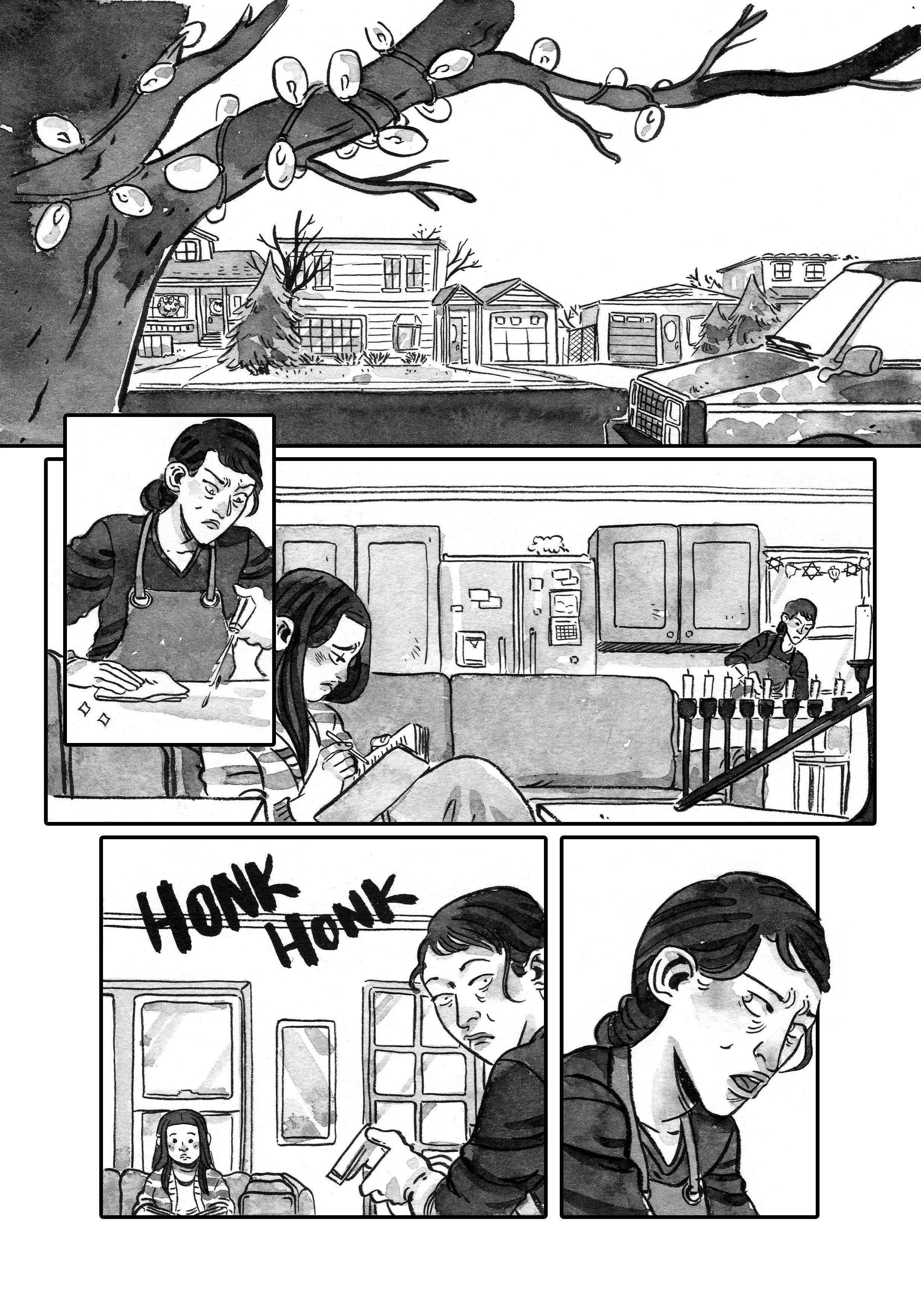 Pencils and inks on roughly-cut 9X14 Strathmore.