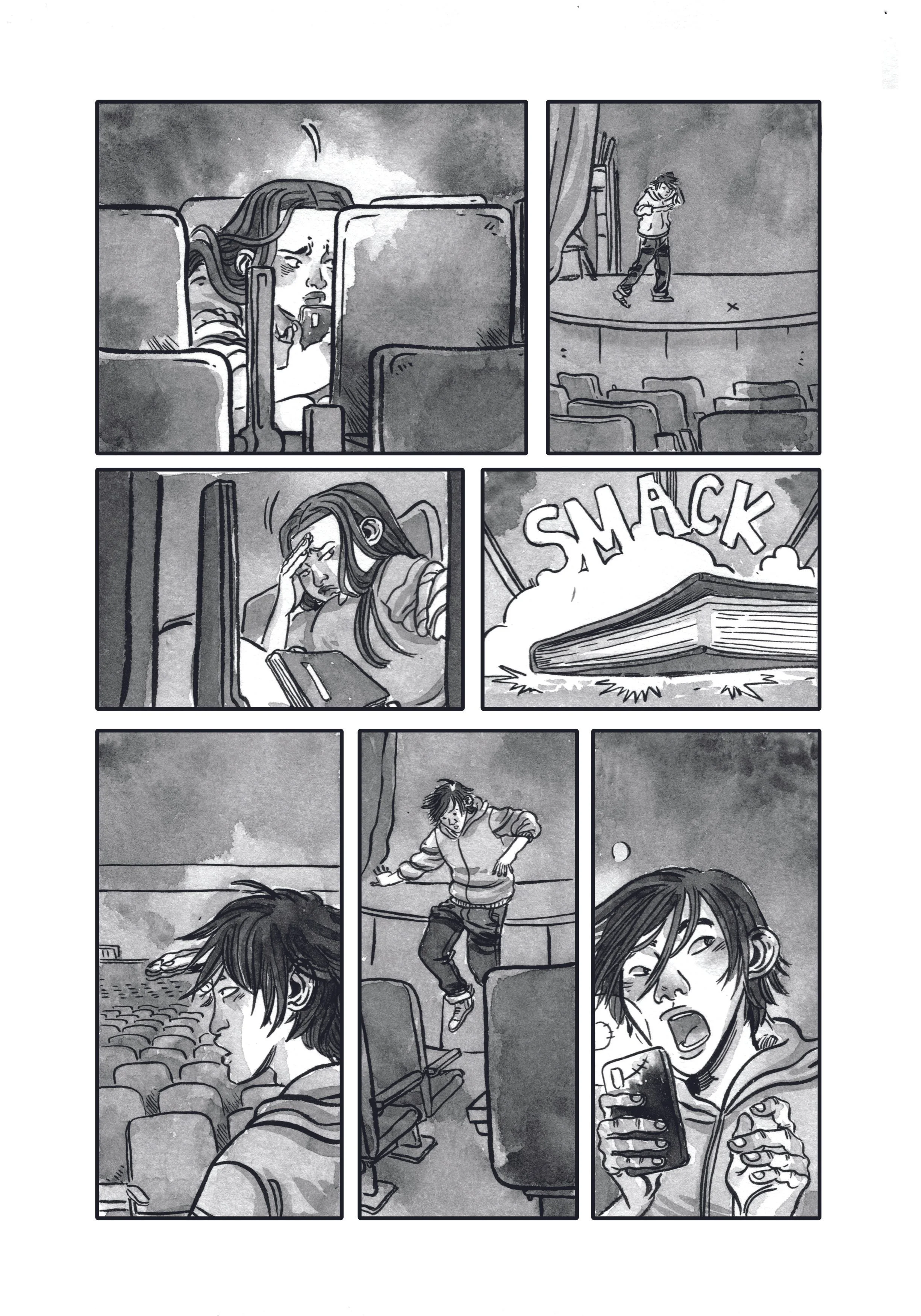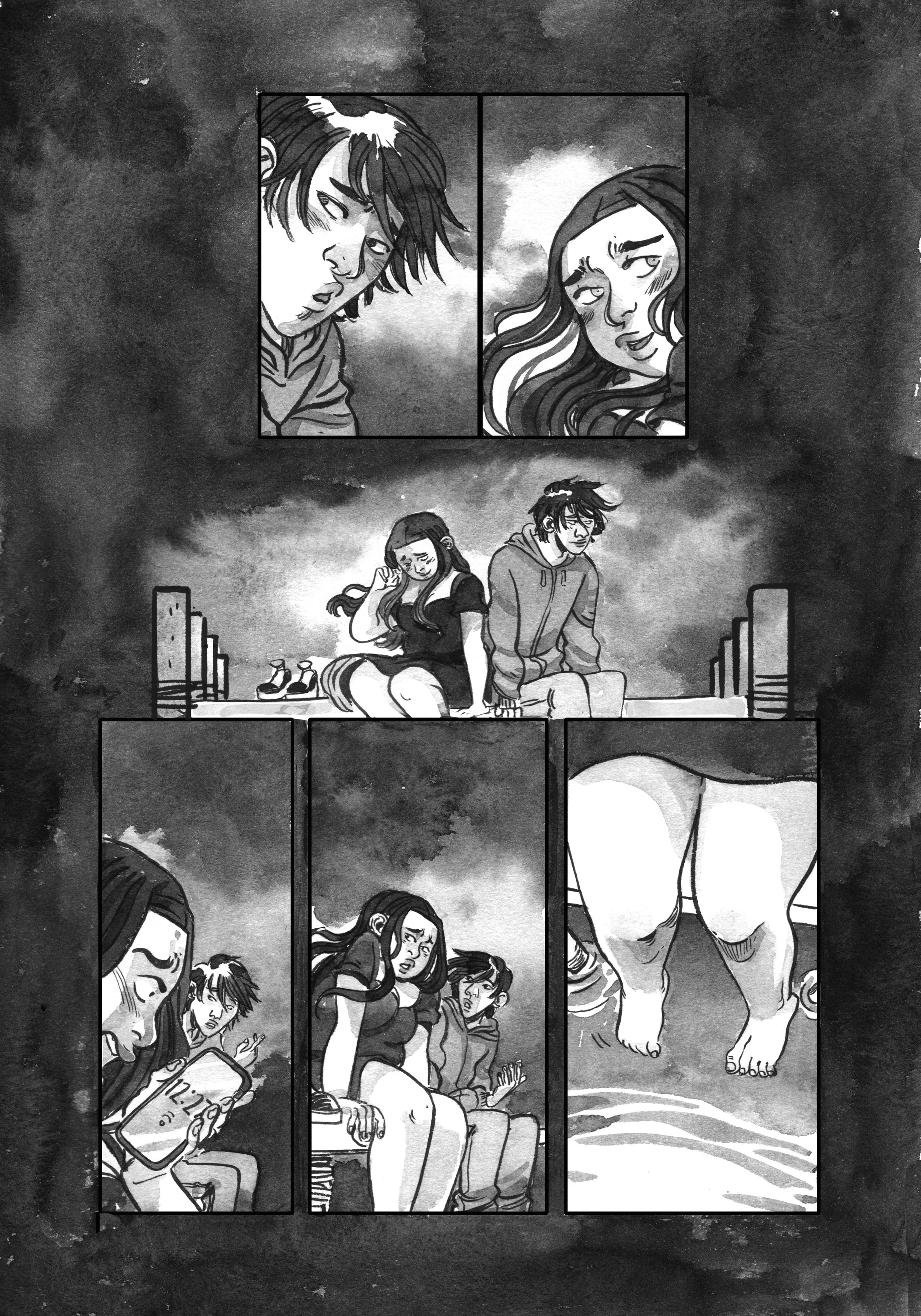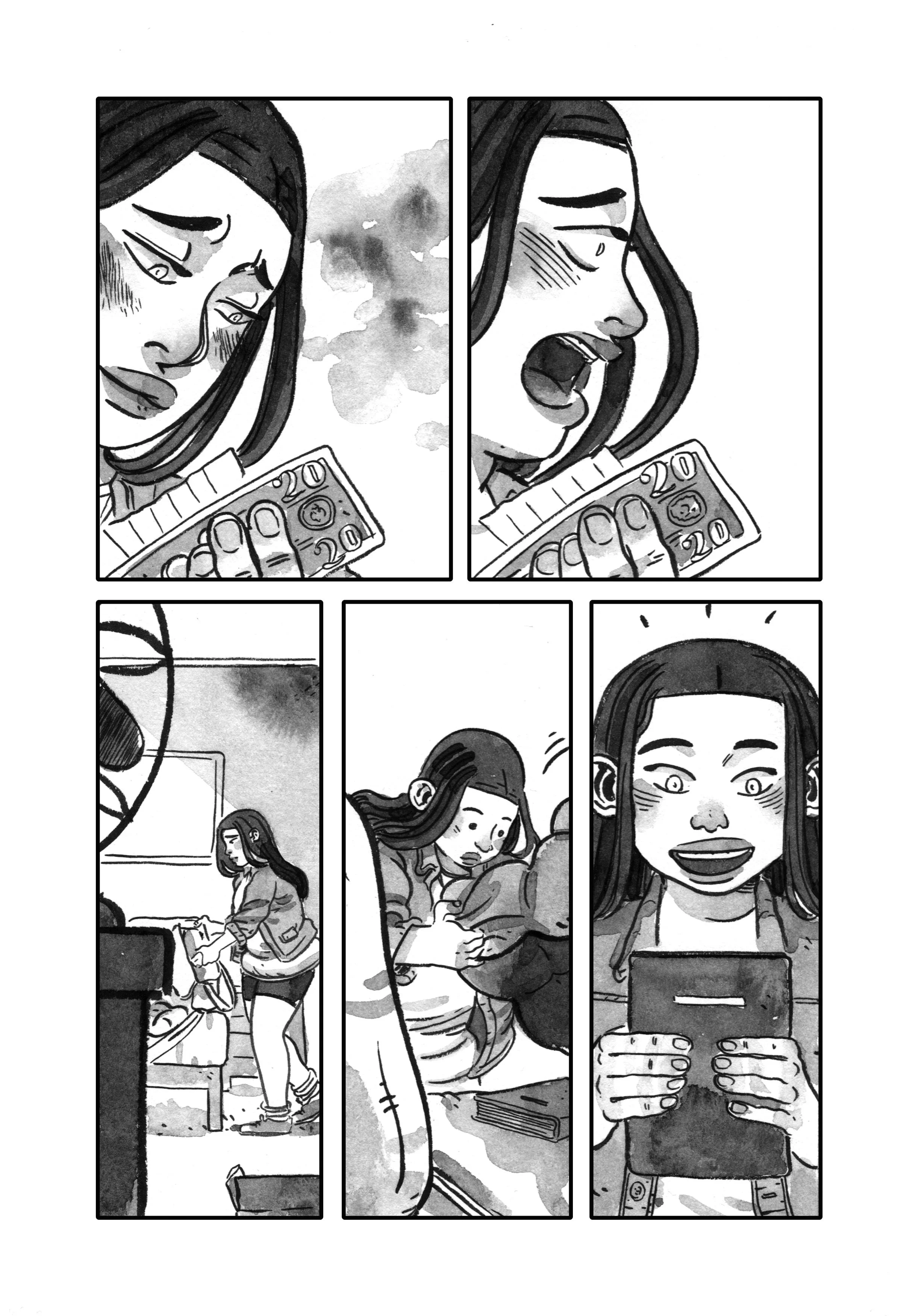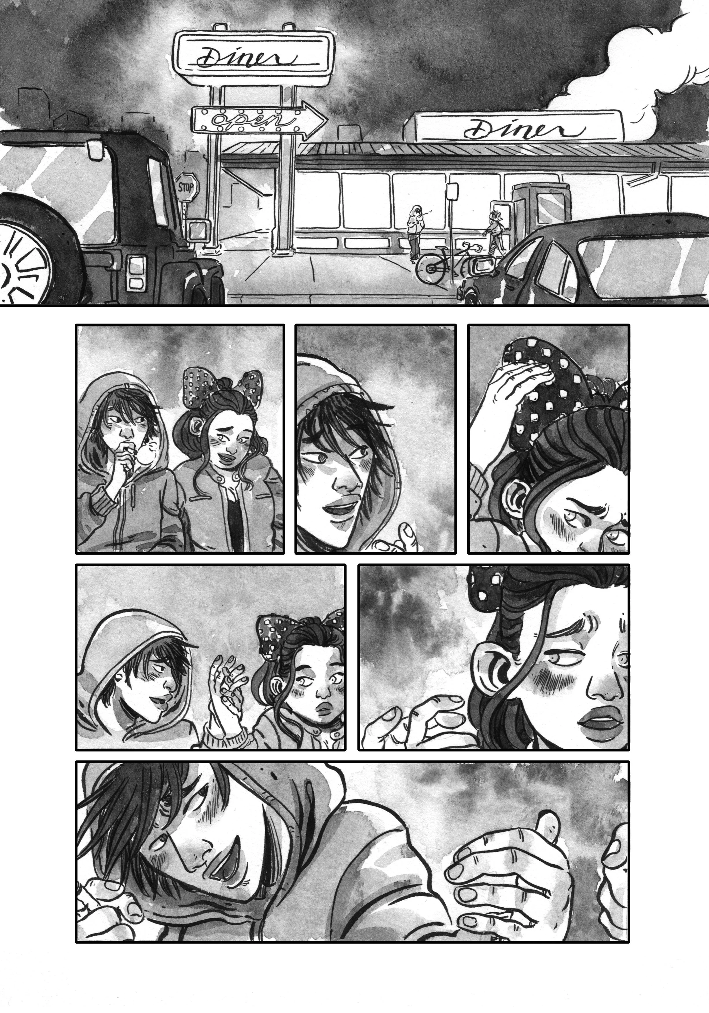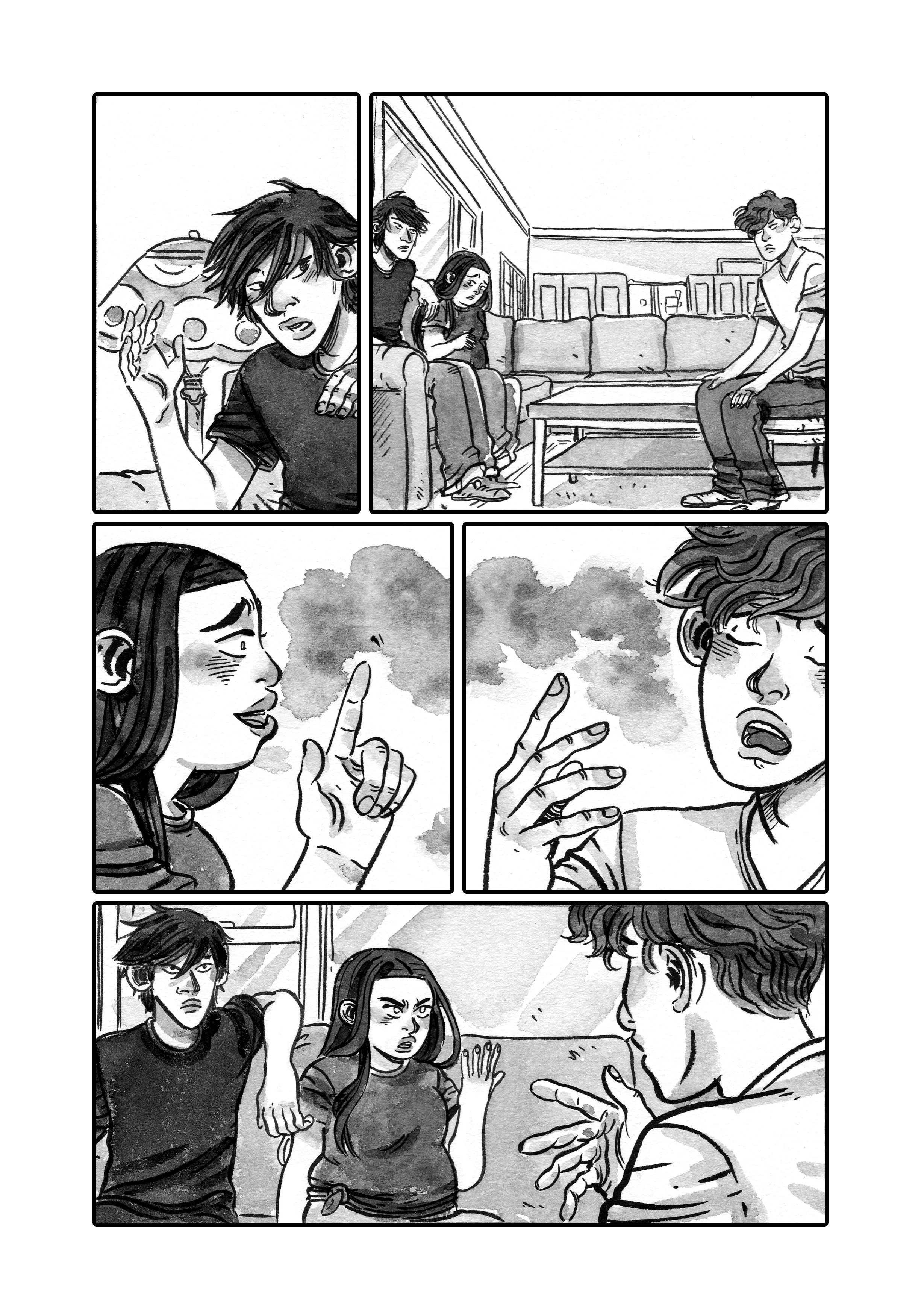 Pencils and inks on roughly-cut 9X14 Strathmore.