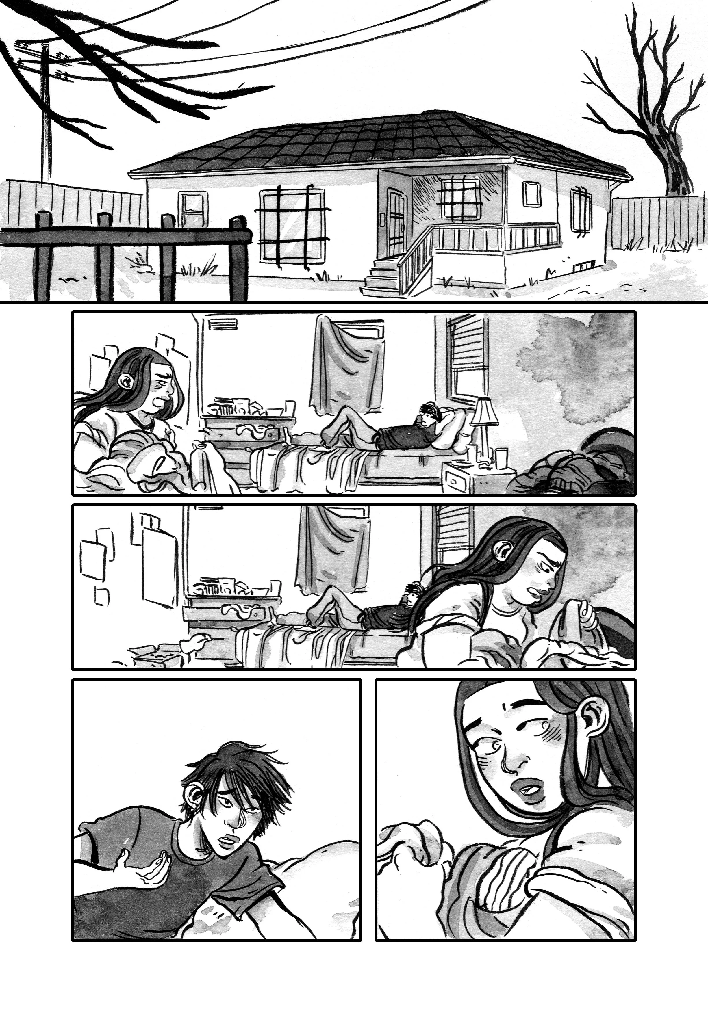 Pencils and inks on roughly-cut 9X14 Strathmore.