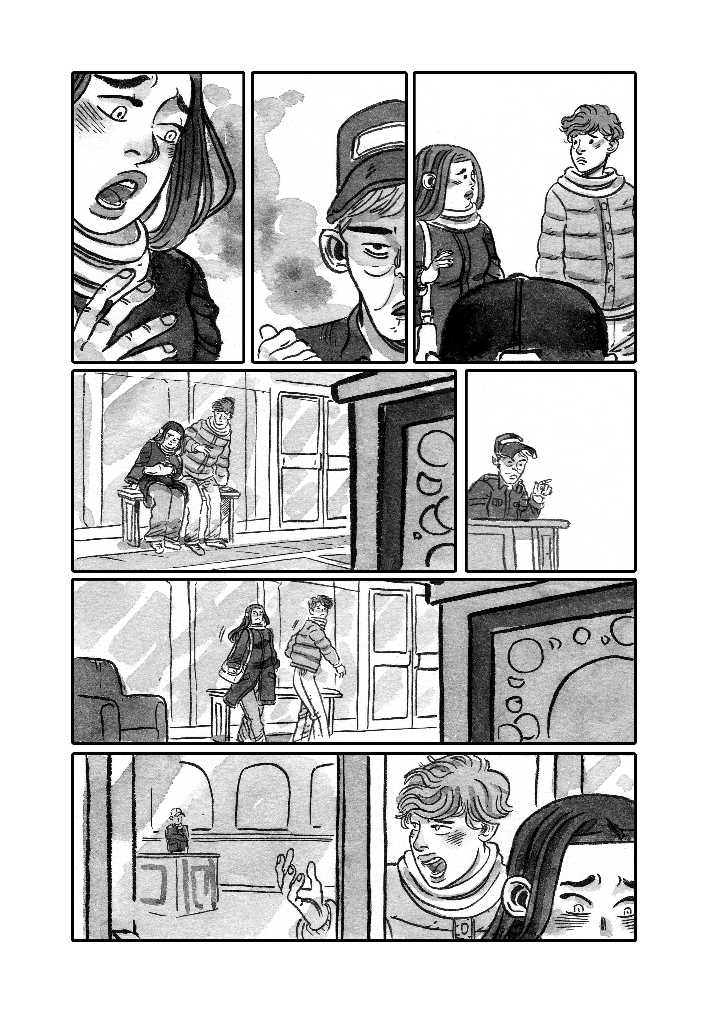 Pencils and inks on roughly-cut 9X14 Strathmore.