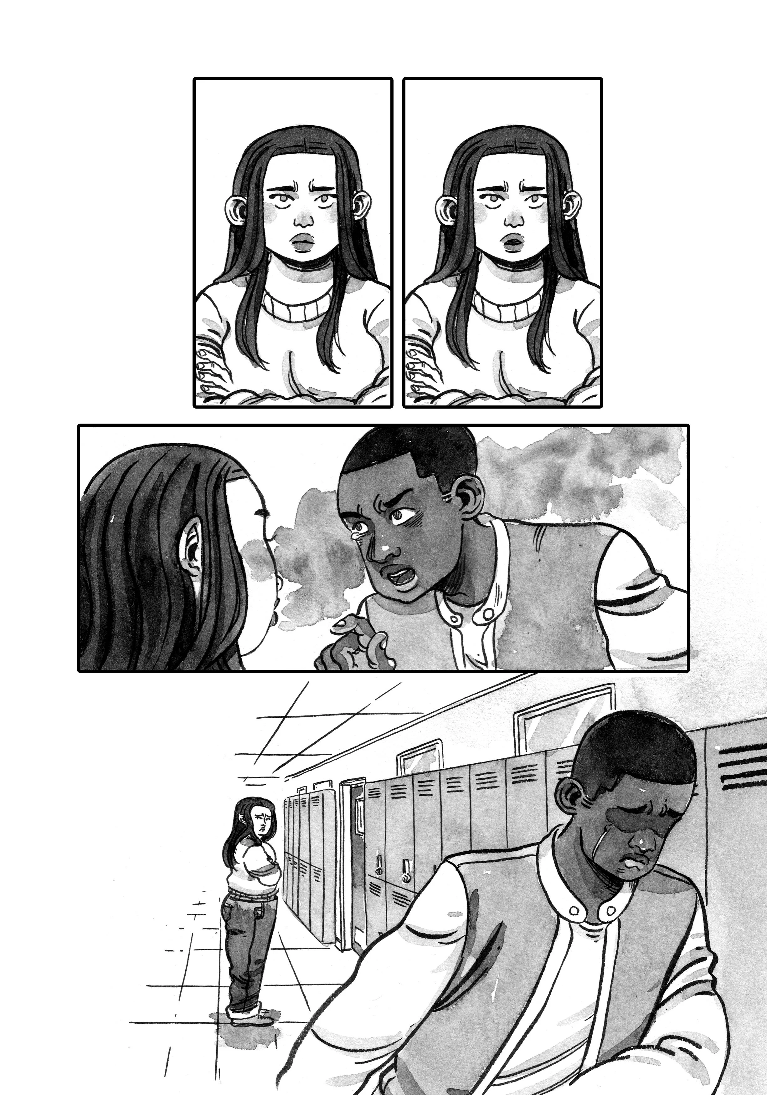 Pencils and inks on roughly-cut 9X14 Strathmore.