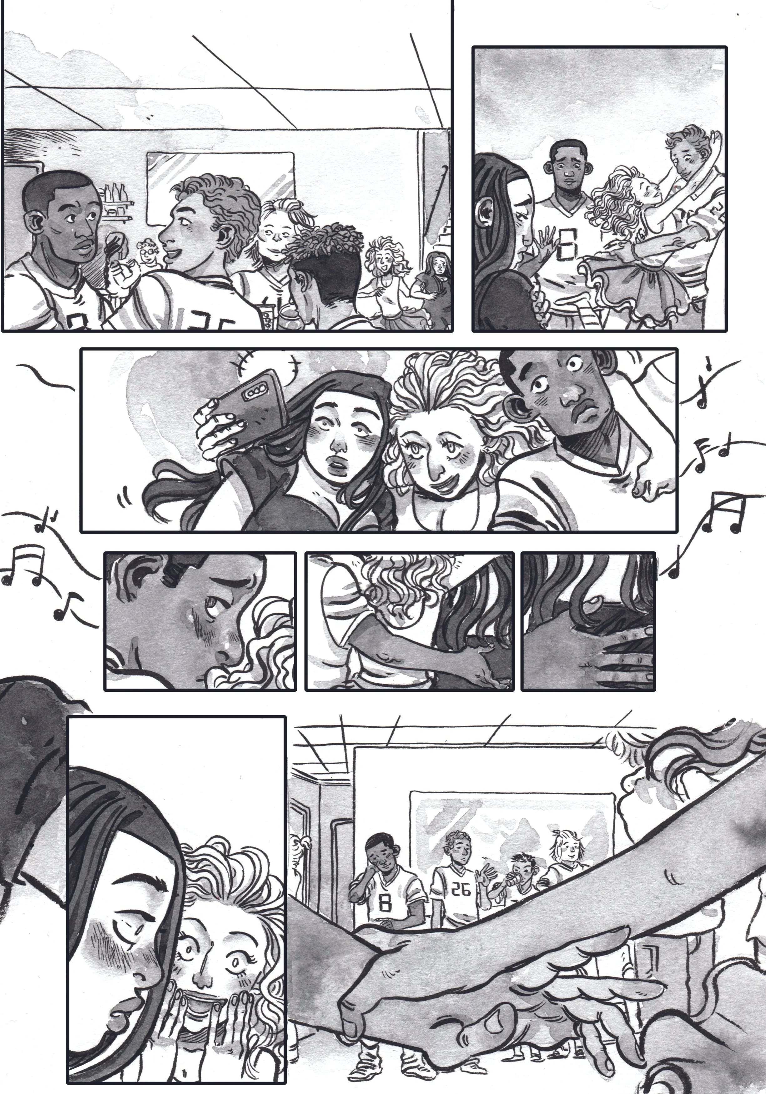 Pencils and inks on roughly-cut 9X14 Strathmore.