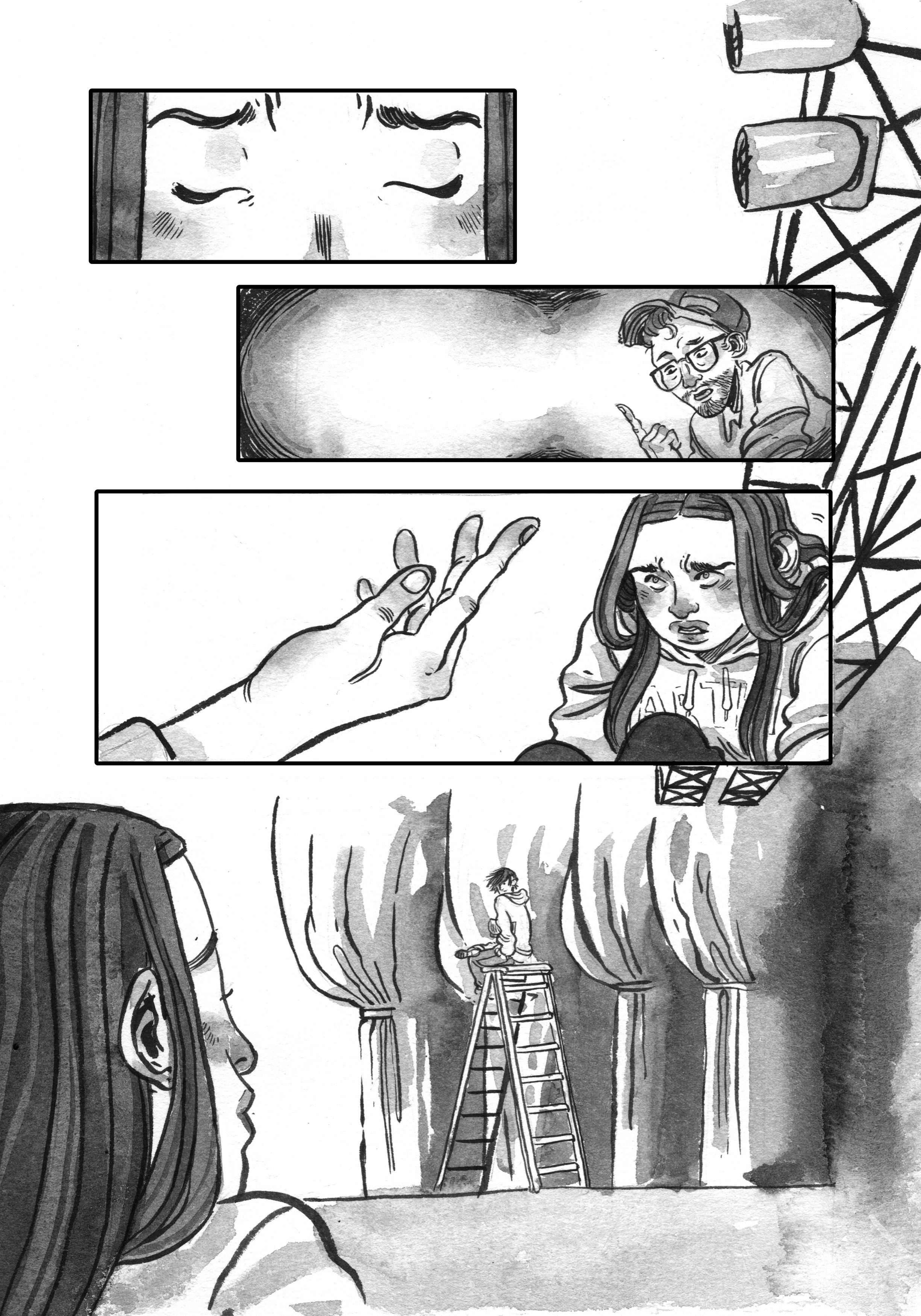 Pencils and inks on roughly-cut 9X14 Strathmore.