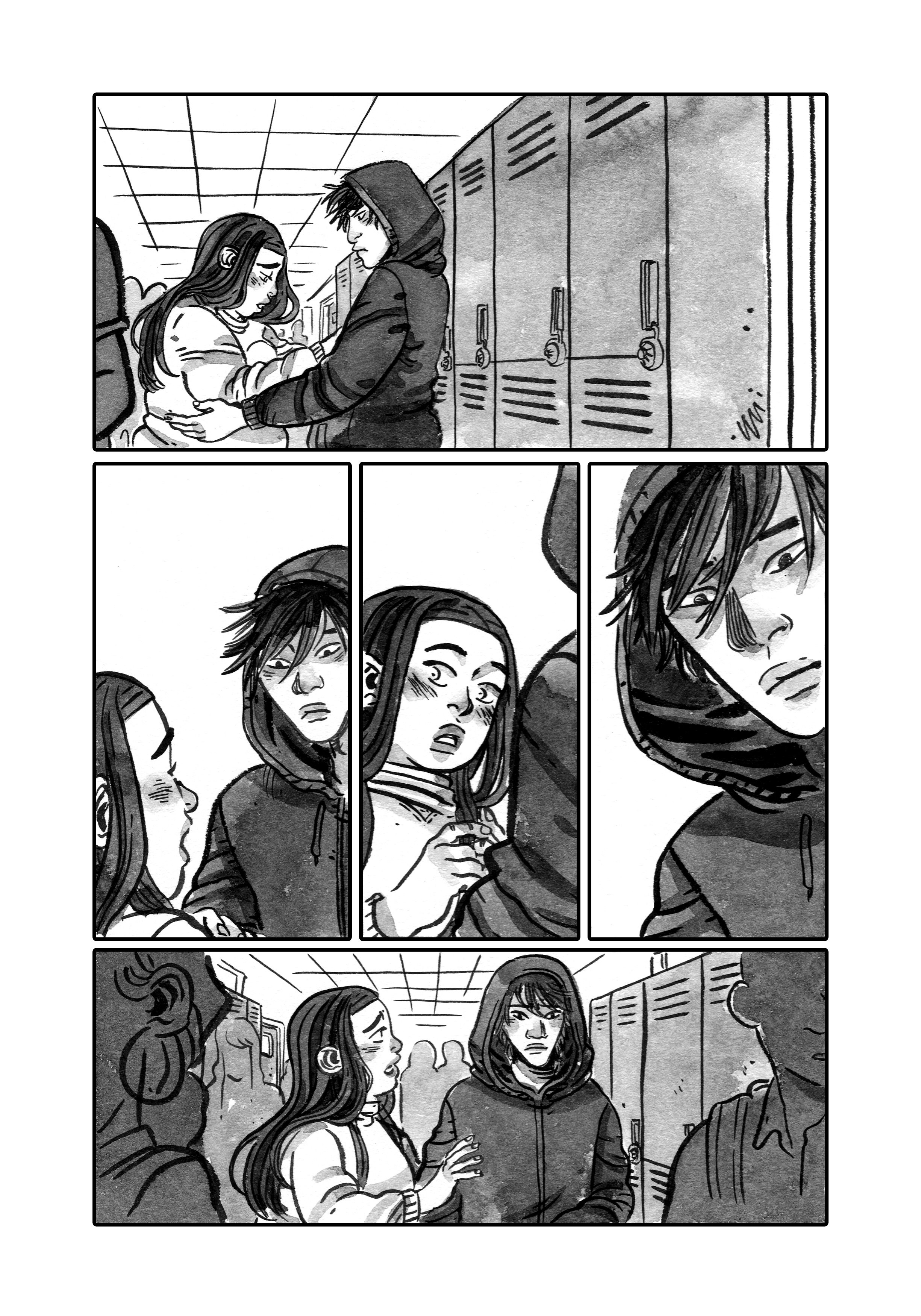 Pencils and inks on roughly-cut 9X14 Strathmore.