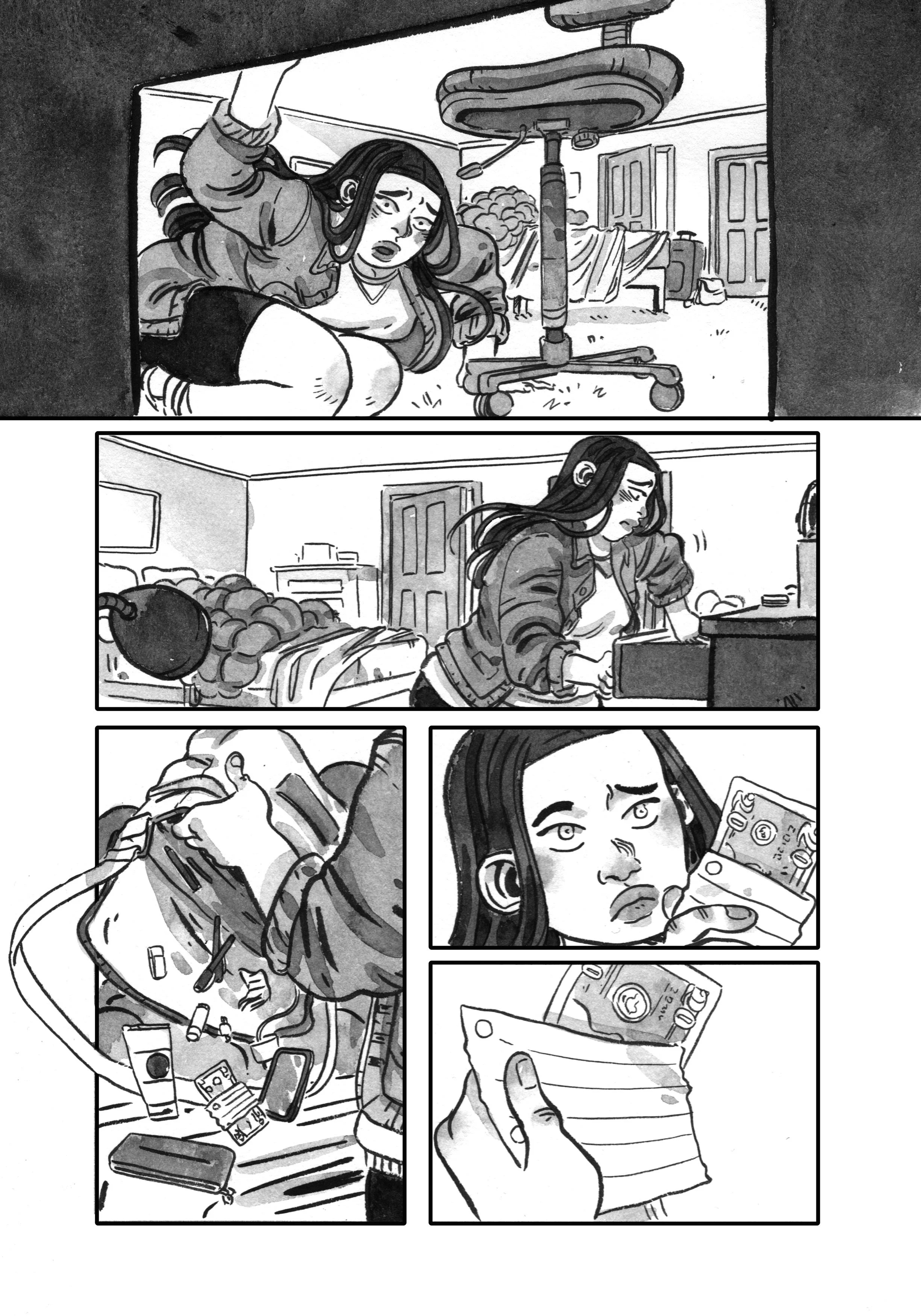 Pencils and inks on roughly-cut 9X14 Strathmore.