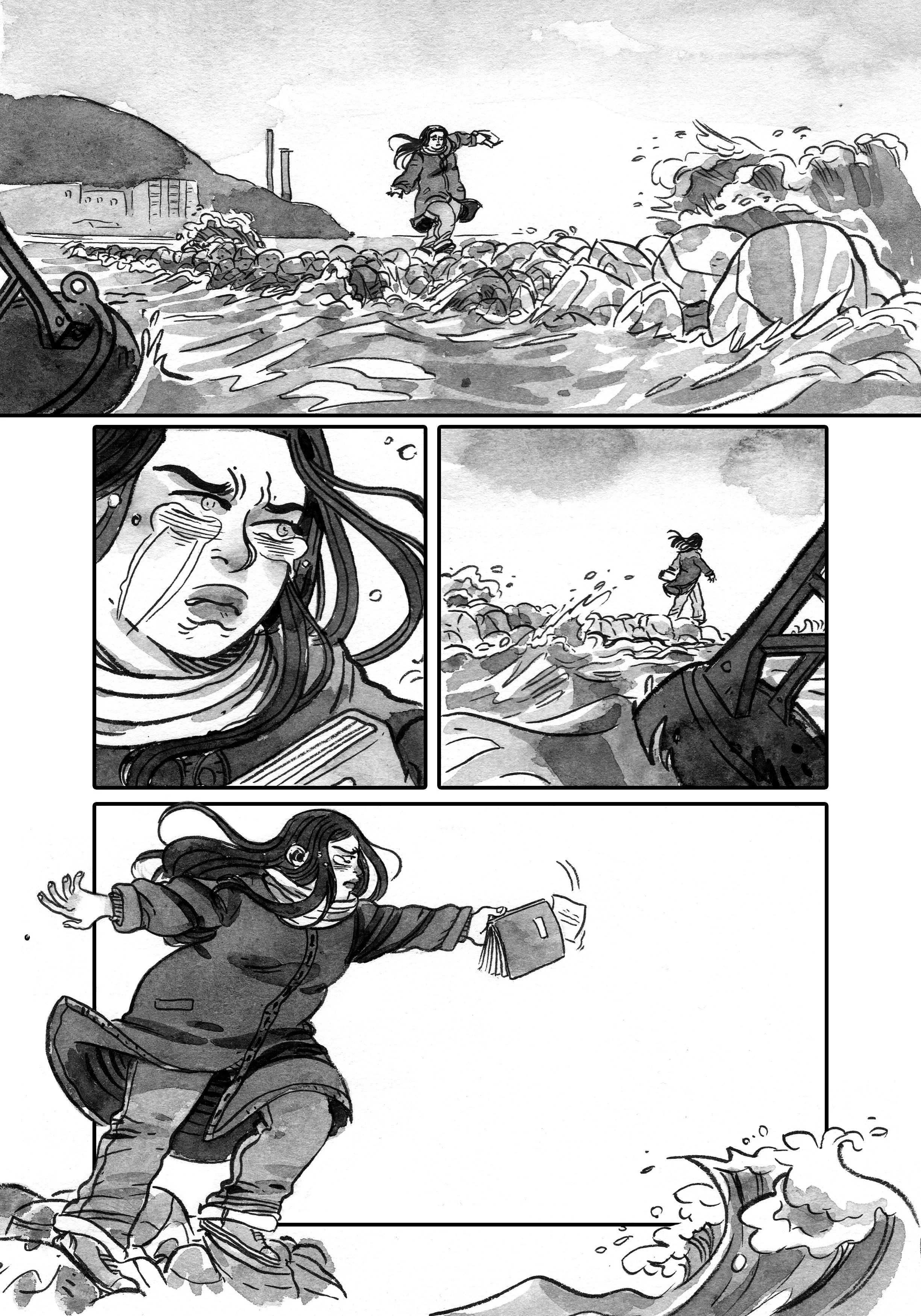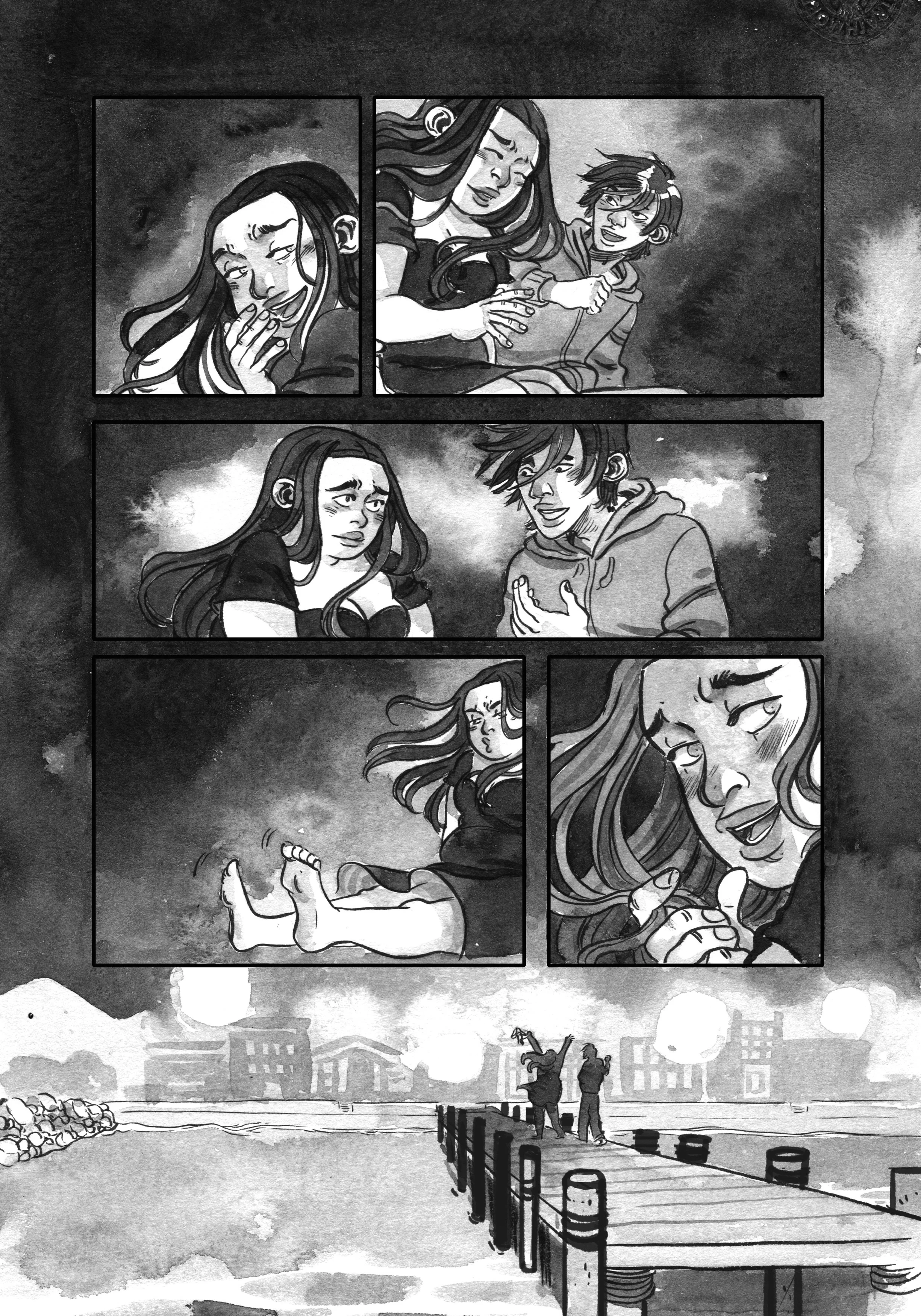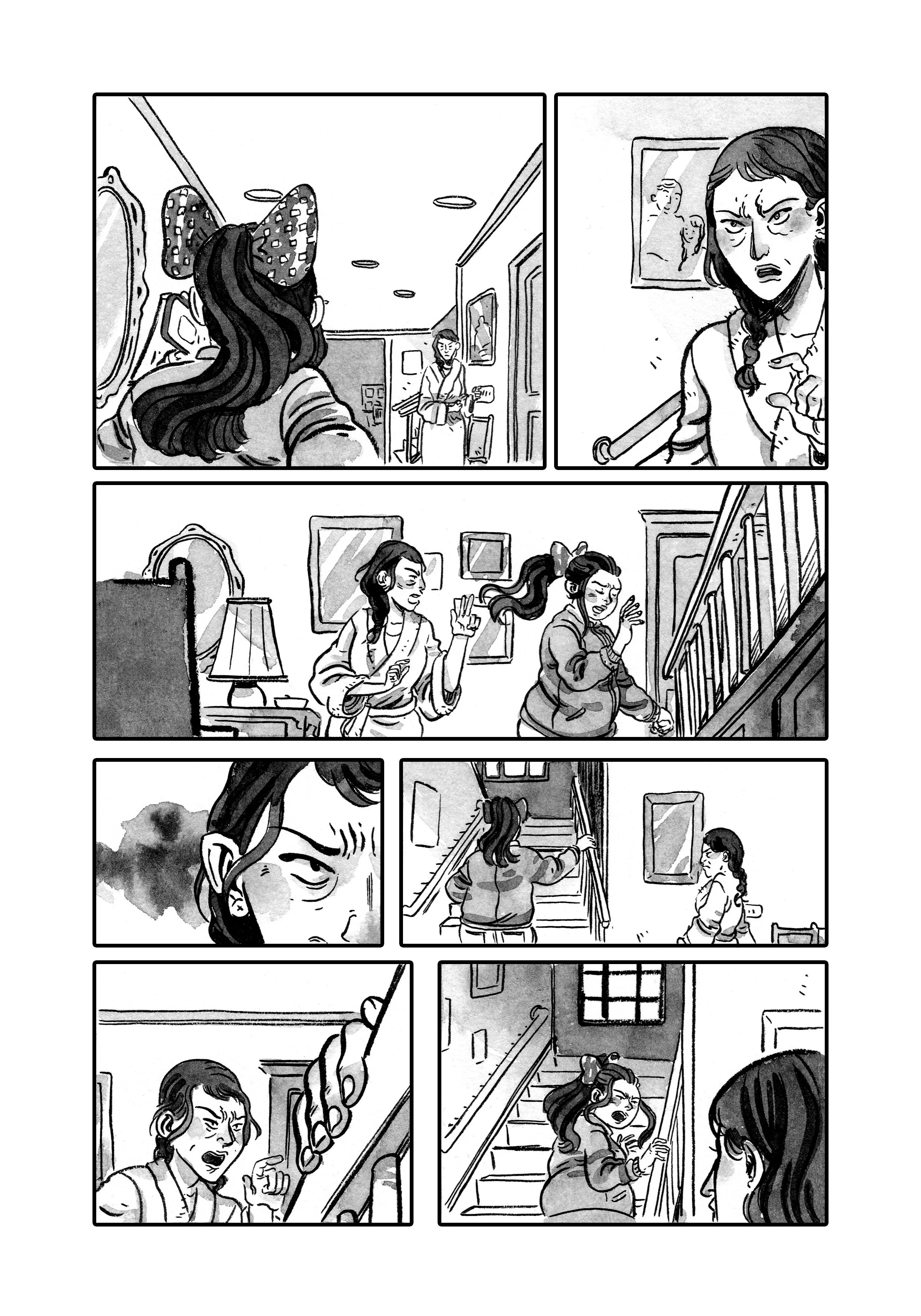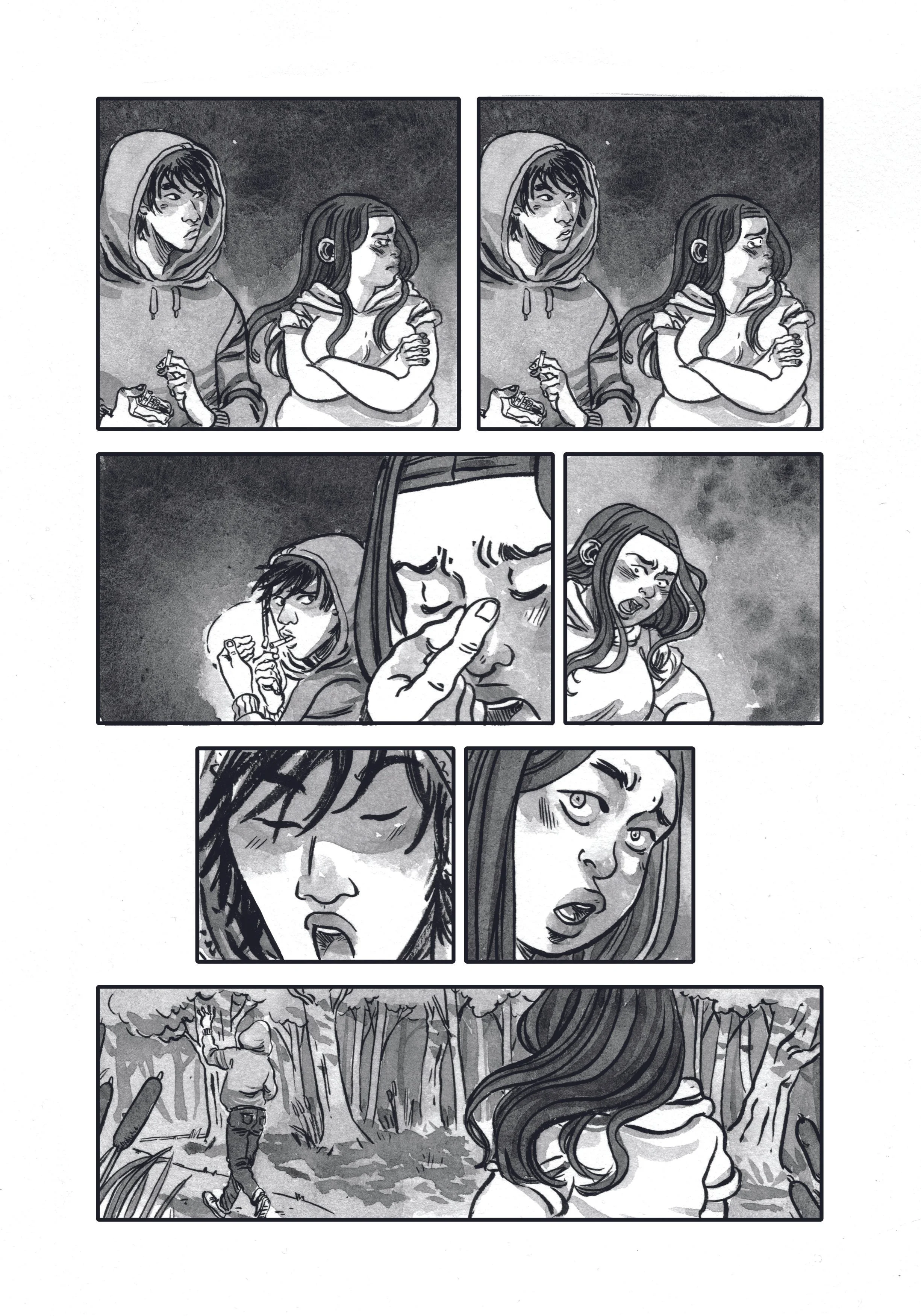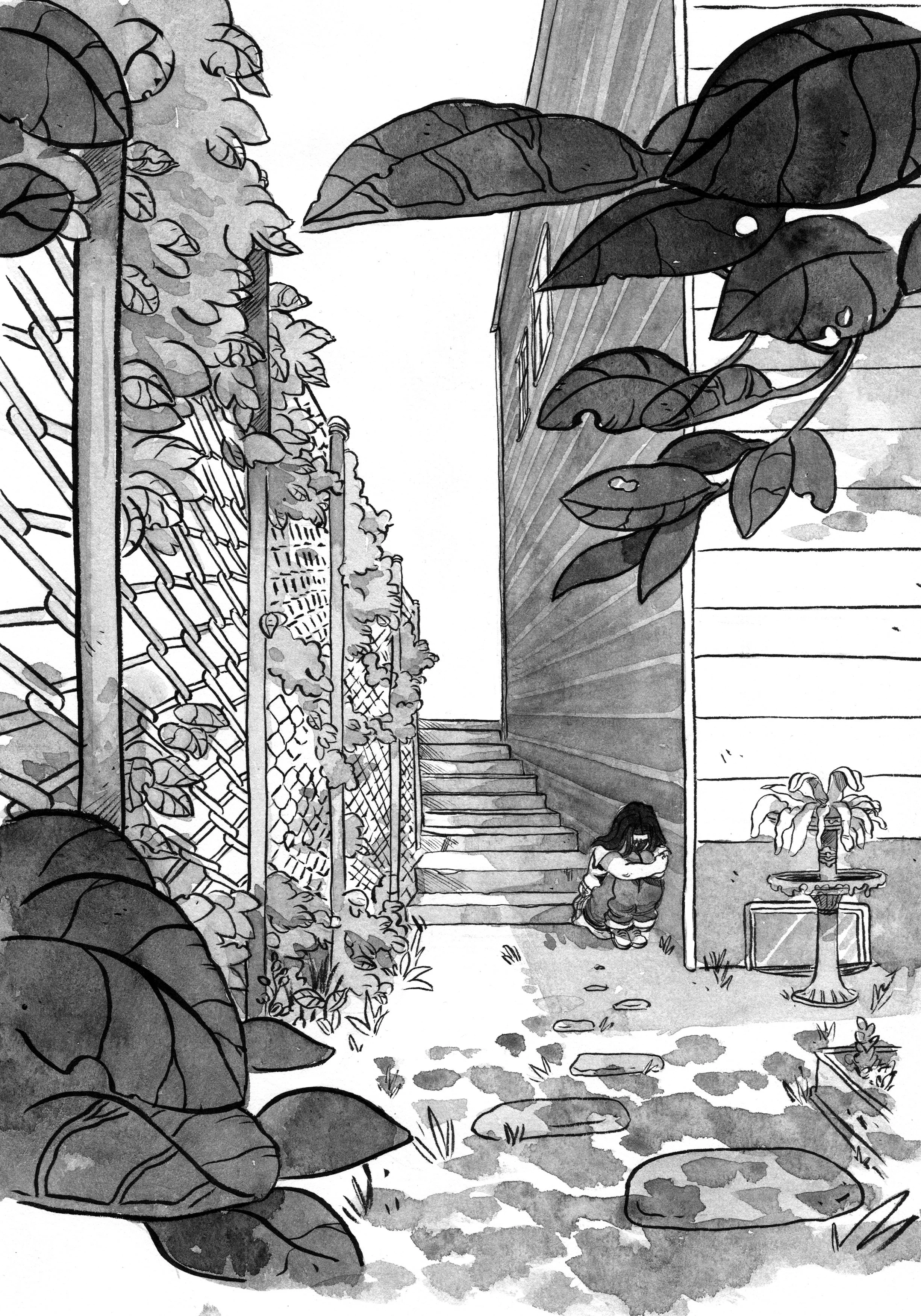 Pencils and inks on roughly-cut 9X14 Strathmore.