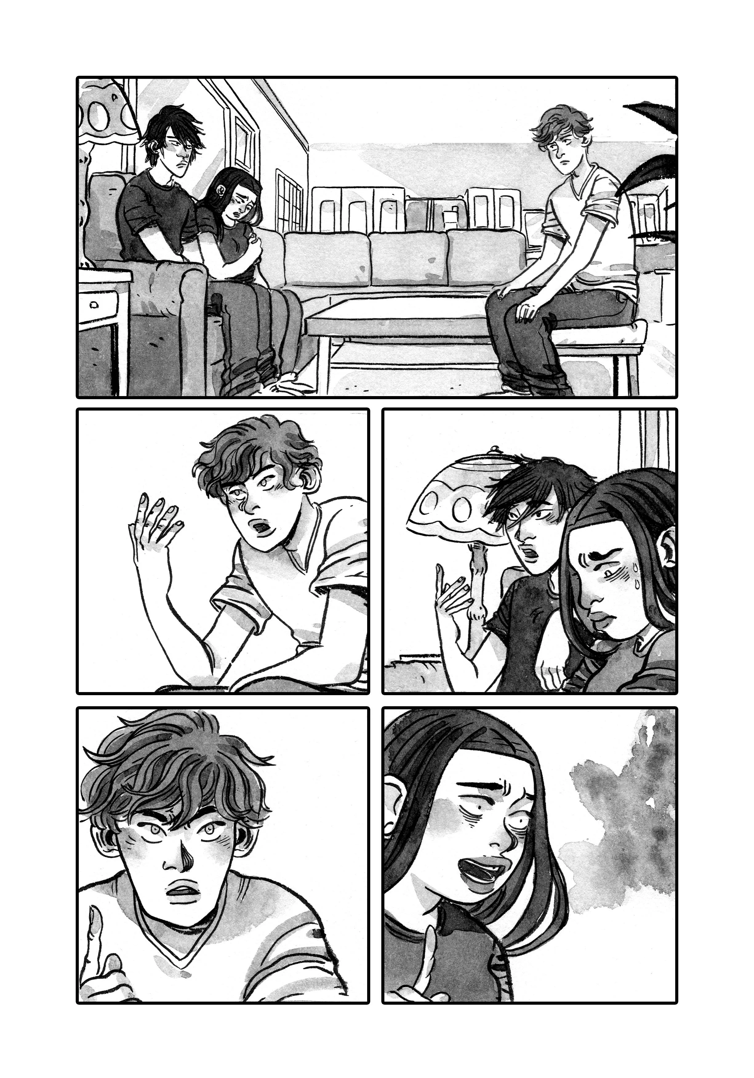 Pencils and inks on roughly-cut 9X14 Strathmore.