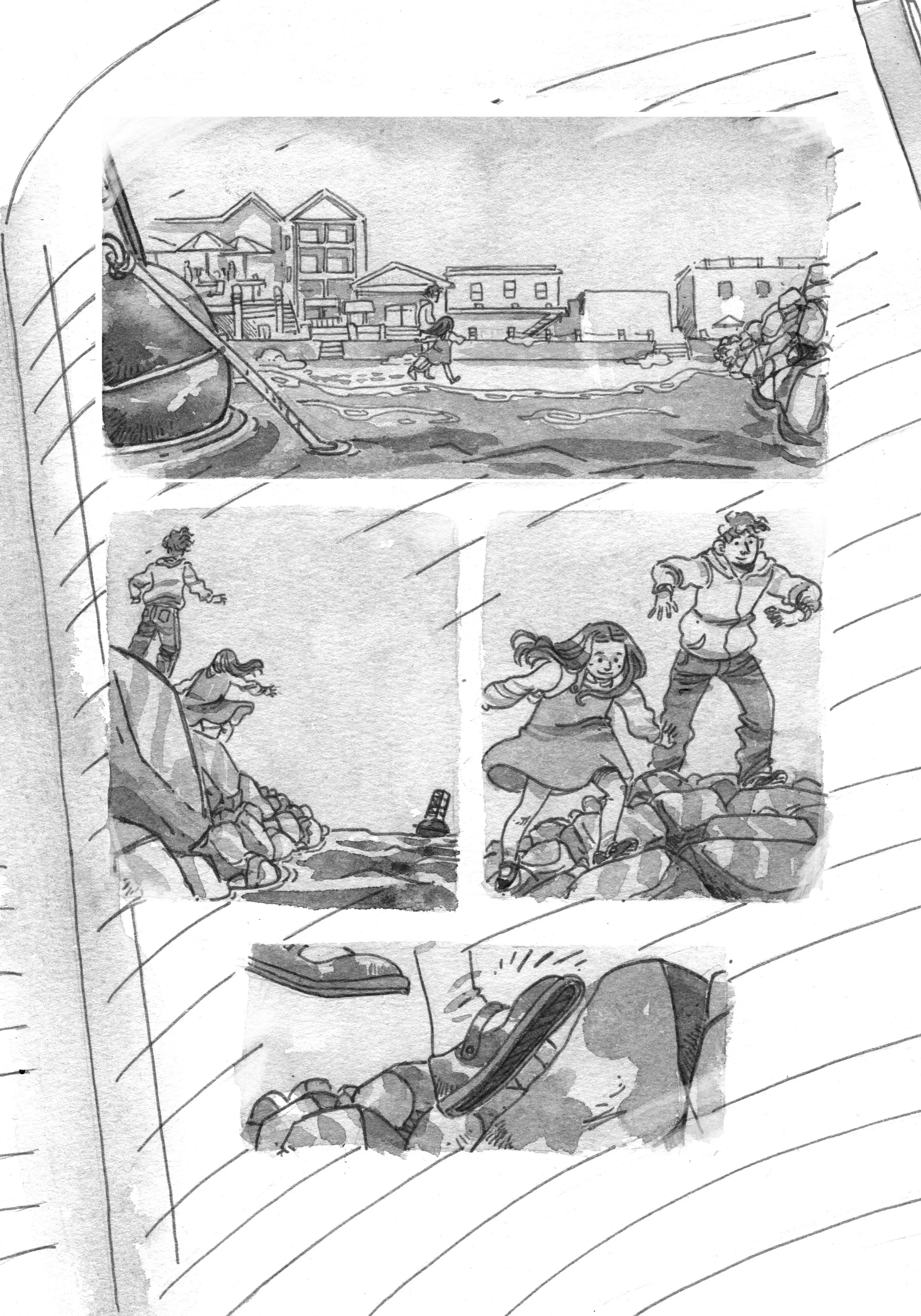 Pencils and inks on roughly-cut 9X14 Strathmore.